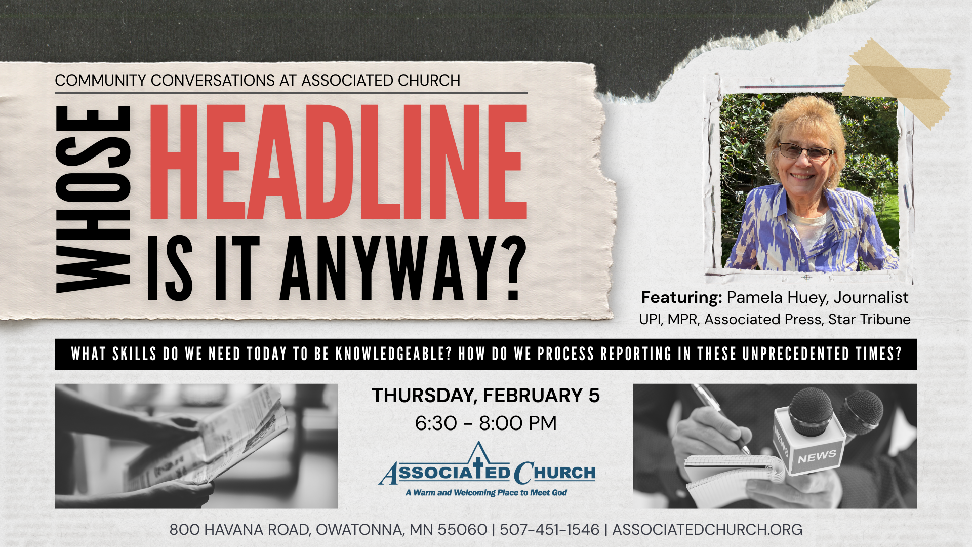 In this unprecedented time, how does an individual process present day reporting and consumption of news? Retired journalist Pamela Huey will share insights based on her half-century as a journalist.